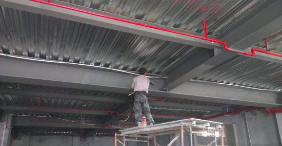 3.还要注意防火涂料工程的施工环境,一般室内要保持温度在0-40度之间,基材的温度要在5-45度之间,空气中的湿度要大于90%,而且施工现场需要适当的空气流通,但是又不能有很大的风。注意室外或施工零件表面有结露的话,就不宜施工。